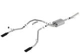 This system features the aggressive ATAK(r) sound and exits through 4" black chrome on T-304 stainless steel tips. Using BORLA(r) Stainless Steel Polish p# 21461 is NOT recommended with these black chrome tips. We suggest cleaning the tips with hot water and a microfiber cloth. A system with bright chrome on T-304 stainless steel tips is also available. BORLA(r) Cat-Back(tm) and Axle-Back exhaust systems feature patented straight-through and multi-core technology designed to unleash hidden horsepower. Increased exhaust velocity adds power, driving excitement, fuel economy, and the distinctive BORLA(r) Sound of Power respected by motoring enthusiasts everywhere. Each system is built from premium T-304 stainless steel, superior to T-400 series knockoffs (such as 409), to give you the absolute best in performance and durability. Ultra-smooth mandrel bends ensure maximum flow & power, and precision computer numerical control (CNC) manufacturing ensures an accurate fit. Best of all, BORLA(r) stands behind every system with a Million-Mile Warranty. Just what you'd expect from the world's most experienced (and most winning) exhaust brand.