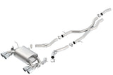 System features a merge X-Pipe for increased performance and improved sound. BORLA(r) system has valves. System features polished T-304 stainless steel tips. System features BORLA(r)'S Polyphonic Harmonizer Technology which utilizes patented units that contain pipes of different diameters and lengths to create multiple exhaust notes that harmonize to deliver a clean, rich, full-bodied sound to the BORLA(r) mufflers. The mufflers then enhance this sound to the character and volume appropriate for our Touring, S-Type and ATAK(r) systems. BORLA(r) Cat-Back(tm) and Axle-Back exhaust systems feature patented straight-through and multi-core technology designed to unleash hidden horsepower. Increased exhaust velocity adds power, driving excitement, fuel economy, and the distinctive BORLA(r) Sound of Power respected by motoring enthusiasts everywhere. Each system is built from premium austenitic T-304 stainless steel, superior to T-400 series knockoffs (such as 409), to give you the absolute best in performance and durability. Ultra-smooth mandrel bends ensure maximum flow& power, and precision computer-controlled CNC manufacturing ensures an accurate fit. Best of all, BORLA(r) stands behind every system with a Million-Mile Warranty. Just what you'd expect from the world's most experienced (and most winning) exhaust brand.