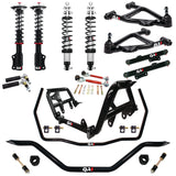 Product Overview The QA1 Level 2 Handling Kit is a serious upgrade for people seeking a better handling and performance from their Fox Body Mustang. The kit includes a lightweight tubular K-member, control arms, boxed trailing arms, sway bars, and front and rear double adjust coilovers. Tubular Front K-member These are designed to save weight and free up room in your engine bay. Weighing only 25lbs., it's 50% lighter than stock K-members and boasts improved geometry and durability. Interchangeable engine mounts, sold separately, offer flexibility for running factory or late model engines including Coyotes. Inverted Front Struts and Rear Coil-Overs Front struts feature an inverted cartridge design, large diameter shaft, and lightweight aluminum body for improved suspension performance. The lightweight, high-travel springs with proven spring rates are optimized for improved handling and street performance. These kits offer up to 2" lower than stock ride height adjustment to dial in the perfect stance. Double-adjust rear coilovers are great for both street and trackday cars looking to further tune their rear suspension. Lightweight Caster Camber Plates Aluminum caster camber plates improve Mustang handling and performance. Lighter and sleeker than steel, they offer precision adjustment to fine-tune suspension geometry for optimal performance. Tubular Control Arms, Trailing Arms and Rear Sway Bar Tubular control arms, trailing arms, and sway bars solve flexing and bushing bind. Easy, Bolt-In Install Made in the USA Fitment Notes Engine mounts not included. QA1 offers several mounts for factory engines as well as popular engine swaps which are sold separately. For Fox Body: Kits for early year range Fox Bodies (1979-1986) will retain factory track width (narrow.) Kits for late year range Fox Bodies (1987-1993) will retain track width of the factory ’87-’93 V8 cars (wide.) Not compatible with Cobra IRS